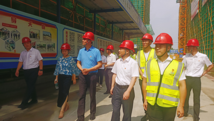 隨后,孫亮一行來到項目部,與項目管理人員就開展主題教育、企業(yè)如何做好輿情管控、下一步深化建工集團及建工二建與安徽廣播電視臺共建等進行了深入交流。葛輝詳細介紹了安徽建工集團概況,建企歷史、建工二建改革發(fā)展情況等,并就黨建與業(yè)務(wù)工作的深度融合進行了交流,他指出要深入學(xué)習(xí)貫徹習(xí)近平新時代中國特色社會主義思想主題教育,強化理論學(xué)習(xí),做到以學(xué)鑄魂、以學(xué)增智、以學(xué)正風(fēng)、以學(xué)促干。孫亮說:“今天與建工二建開展黨建活動十分有意義,我看到了‘支部建在項目上’和黨員發(fā)揮先鋒模范作用的良好效果”。他對項目工程質(zhì)量、黨建工作發(fā)揮作用等給予了高度肯定,贊許了項目一線施工人員踔厲奮發(fā)的精神面貌。姚程表示,在這個特別的日子與建工二建開展黨建共建非常榮幸,對在高溫天氣下依然堅守崗位,奮戰(zhàn)在一線的勞動者表達敬意。她說:“要努力踐行共產(chǎn)黨員的使命擔(dān)當(dāng),弘揚勞模精神、勞動精神、工匠精神,扎實做好本職工作”。