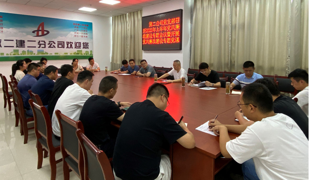 7月7日下午,第二公司黨支部召開2023年上半年黨風(fēng)廉政建設(shè)專題會議暨開展黨風(fēng)廉政建設(shè)專題黨課活動。會議由黨支部書記黃業(yè)云主持,第二公司黨支部在肥黨員、機關(guān)中層管理人員等參加會議。