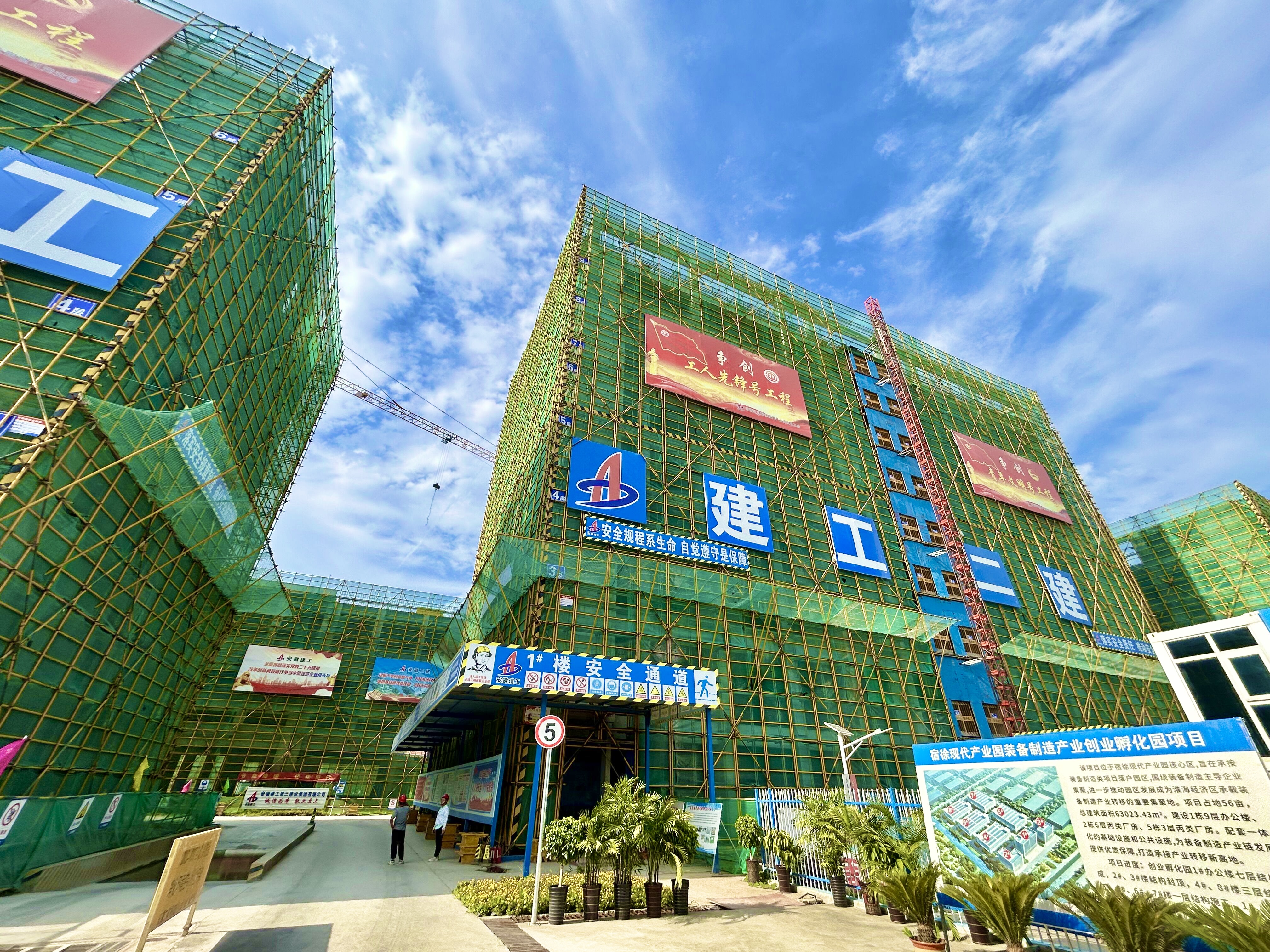依托勞動(dòng)競賽,項(xiàng)目部倒排工期、掛圖作戰(zhàn),加強(qiáng)現(xiàn)場人、機(jī)、料的投入,加大現(xiàn)場工作面建設(shè)。日前,宿徐產(chǎn)業(yè)園消防站及垃圾中轉(zhuǎn)站項(xiàng)目已竣工驗(yàn)收;創(chuàng)業(yè)孵化園項(xiàng)目2#、3#樓主體驗(yàn)收已完成;1#、4#、8#樓結(jié)構(gòu)已封頂;5#、6#、7#樓正處于主體施工階段。其中,孵化園廠房更是連續(xù)通過了“宿州市建設(shè)工程施工質(zhì)量標(biāo)準(zhǔn)化示范工程”“集團(tuán)安全文明示范工地”以及“宿州市市級建筑施工安全生產(chǎn)標(biāo)準(zhǔn)化示范工地”的驗(yàn)收。此外,在項(xiàng)目實(shí)施過程中,項(xiàng)目黨支部充分發(fā)揮黨組織的戰(zhàn)斗堡壘作用和黨員先鋒模范作用,順利通過驗(yàn)收并被命名為建工集團(tuán)“黨員先鋒號”工程。