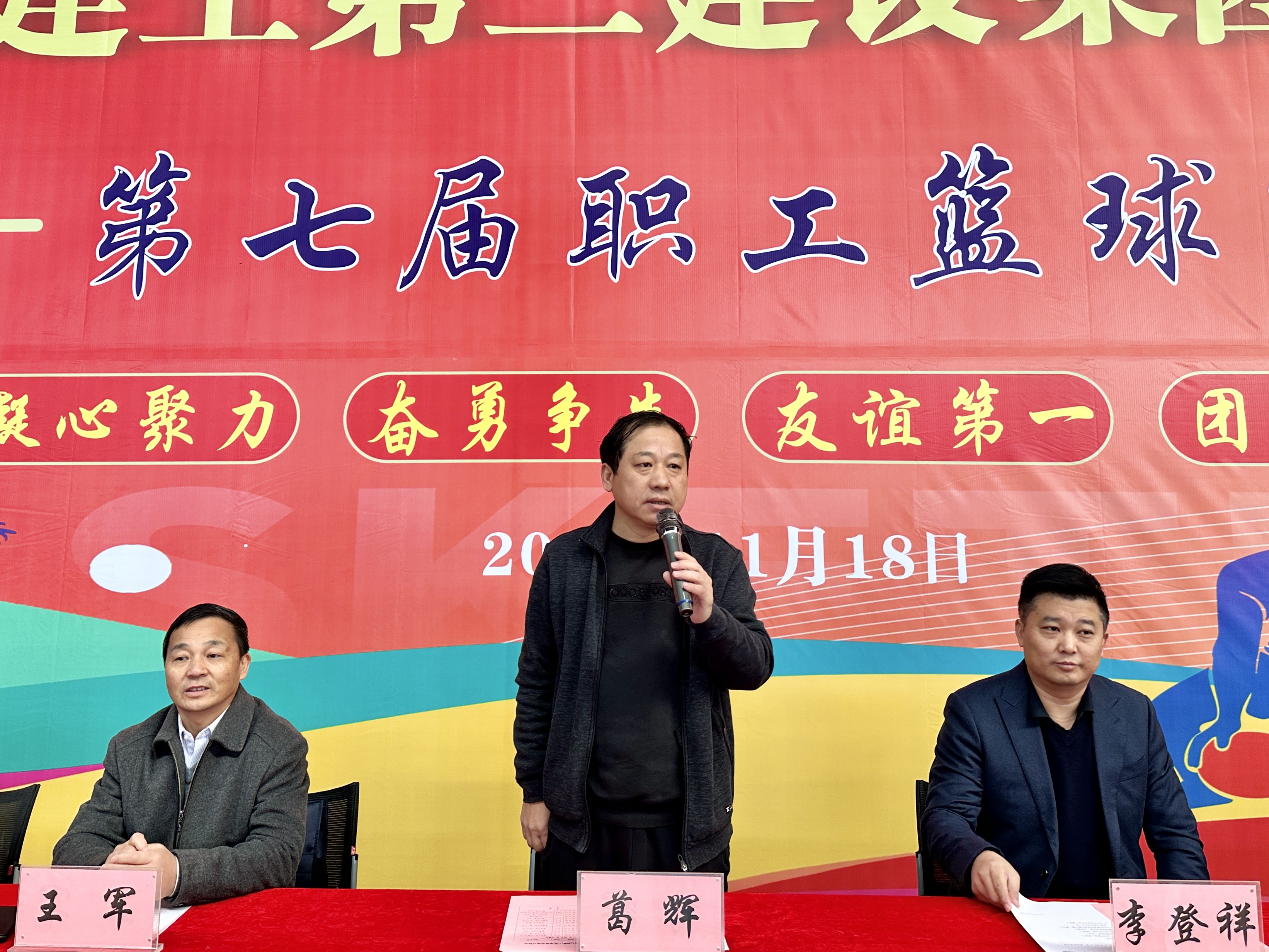 11月18日至19日,建工二建第七屆職工籃球賽在合肥隆重舉行,比賽歷時兩天。公司黨委副書記、總經(jīng)理葛輝出席開幕式宣布本屆籃球賽開幕,并為首場比賽開球!公司黨委副書記、副總經(jīng)理李登祥致開幕辭。