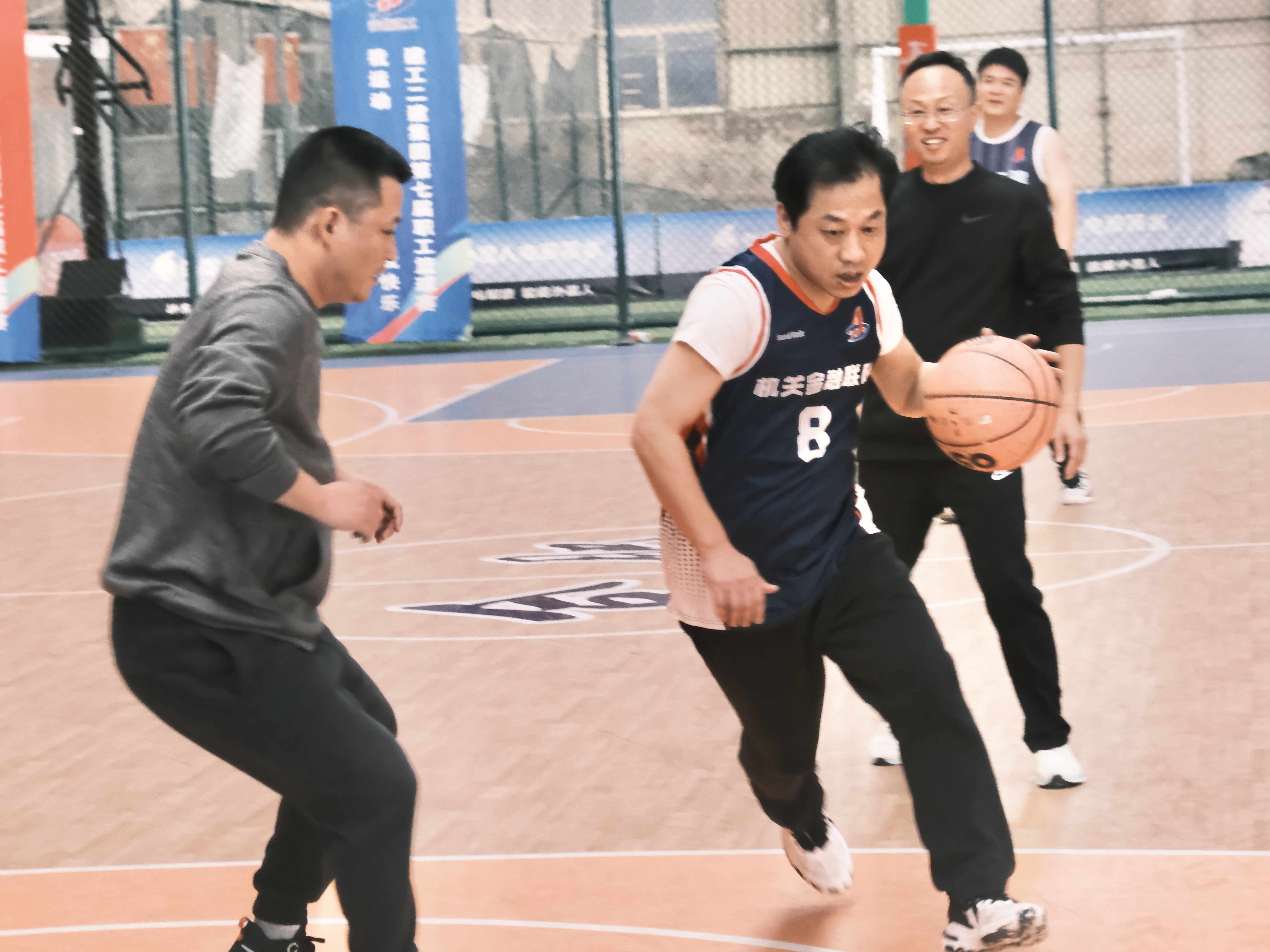 比賽尾聲階段,公司領(lǐng)導(dǎo)和分公司領(lǐng)導(dǎo)隊進行籃球表演賽,現(xiàn)場氣氛熱烈,高潮不斷!