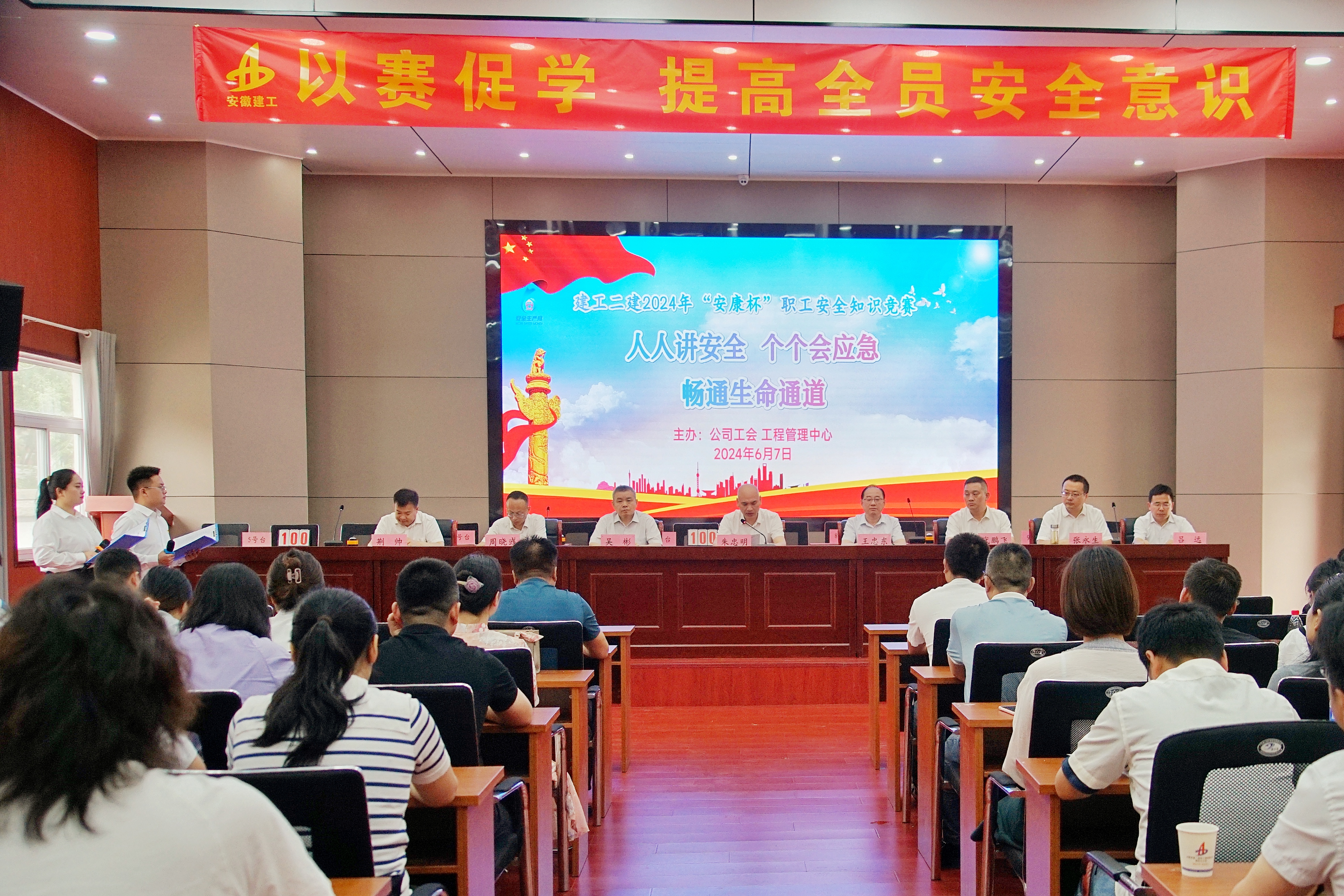 今年6月是第23個(gè)全國(guó)“安全生產(chǎn)月”。6月7日上午,由建工二建工會(huì)、工程管理中心聯(lián)合舉辦的“安康杯”職工安全知識(shí)競(jìng)賽活動(dòng)如期舉行。建工股份副總經(jīng)理,建工二建黨委書記、董事長(zhǎng)朱忠明致開幕辭,活動(dòng)特別邀請(qǐng)集團(tuán)工程管理中心王忠東主管擔(dān)任比賽評(píng)委。公司領(lǐng)導(dǎo)班子成員、機(jī)關(guān)部門負(fù)責(zé)人、所屬單位分管領(lǐng)導(dǎo)及相關(guān)科室成員、項(xiàng)目經(jīng)理代表、參賽職工等百余人參加活動(dòng)。