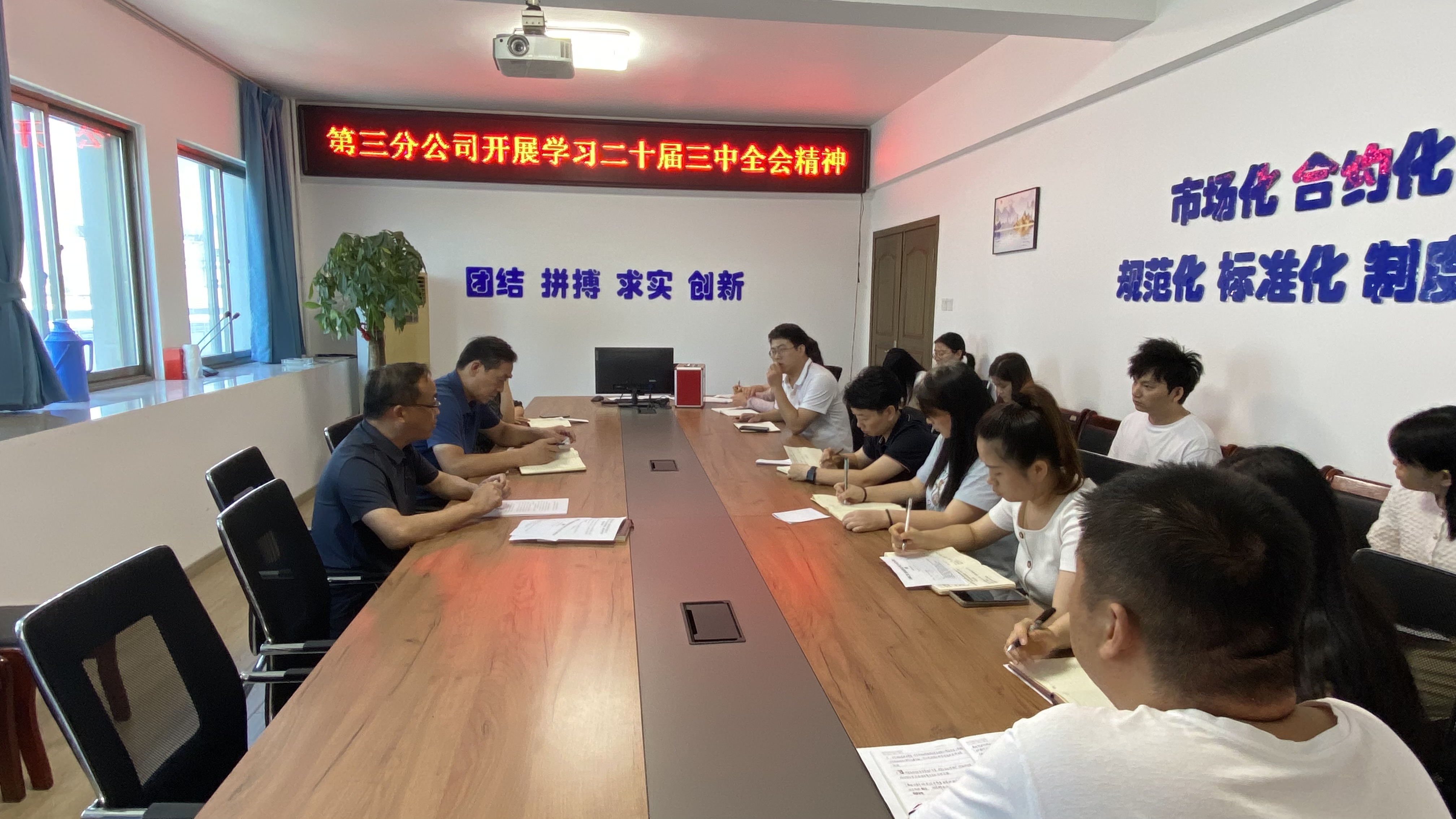 為深入學(xué)習(xí)貫徹黨的二十屆三中全會精神,引導(dǎo)黨員干部準(zhǔn)確領(lǐng)會精神實質(zhì)。近日,第三分公司黨支部組織召開學(xué)習(xí)黨的二十屆三中全會精神專題會,機(jī)關(guān)全體職工參加學(xué)習(xí)。