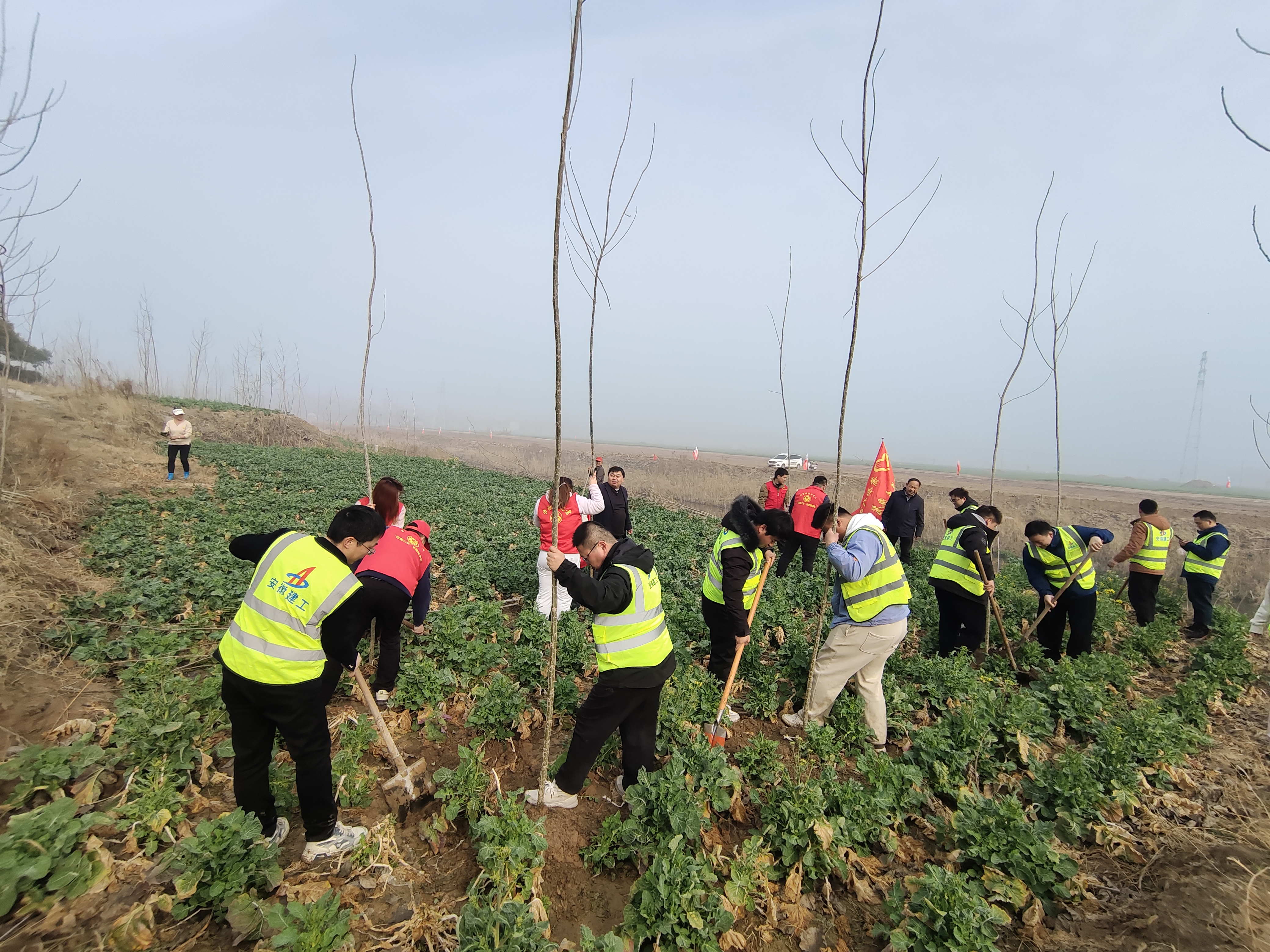 活動(dòng)現(xiàn)場,項(xiàng)目部員工與鎮(zhèn)政府職工熱情高漲,干勁十足。經(jīng)過一上午的辛勤勞動(dòng),百余株新栽種的樹苗迎風(fēng)挺立,為初春的大地增添了勃勃生機(jī)。