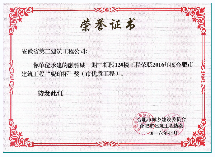 琥珀杯(融科城一期二標(biāo)段12#樓工程)