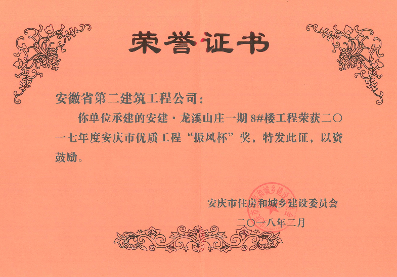 振風(fēng)杯(龍溪山莊一期8#樓工程)