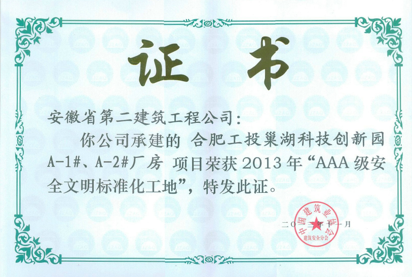 AAA級(jí)安全文明示范工地(合肥工投巢湖科技創(chuàng)新園廠房)
