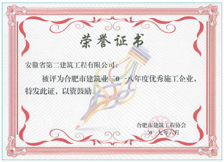 2018年度合肥建筑業(yè)優(yōu)秀施工企業(yè)